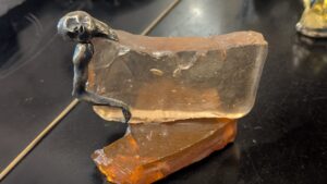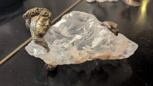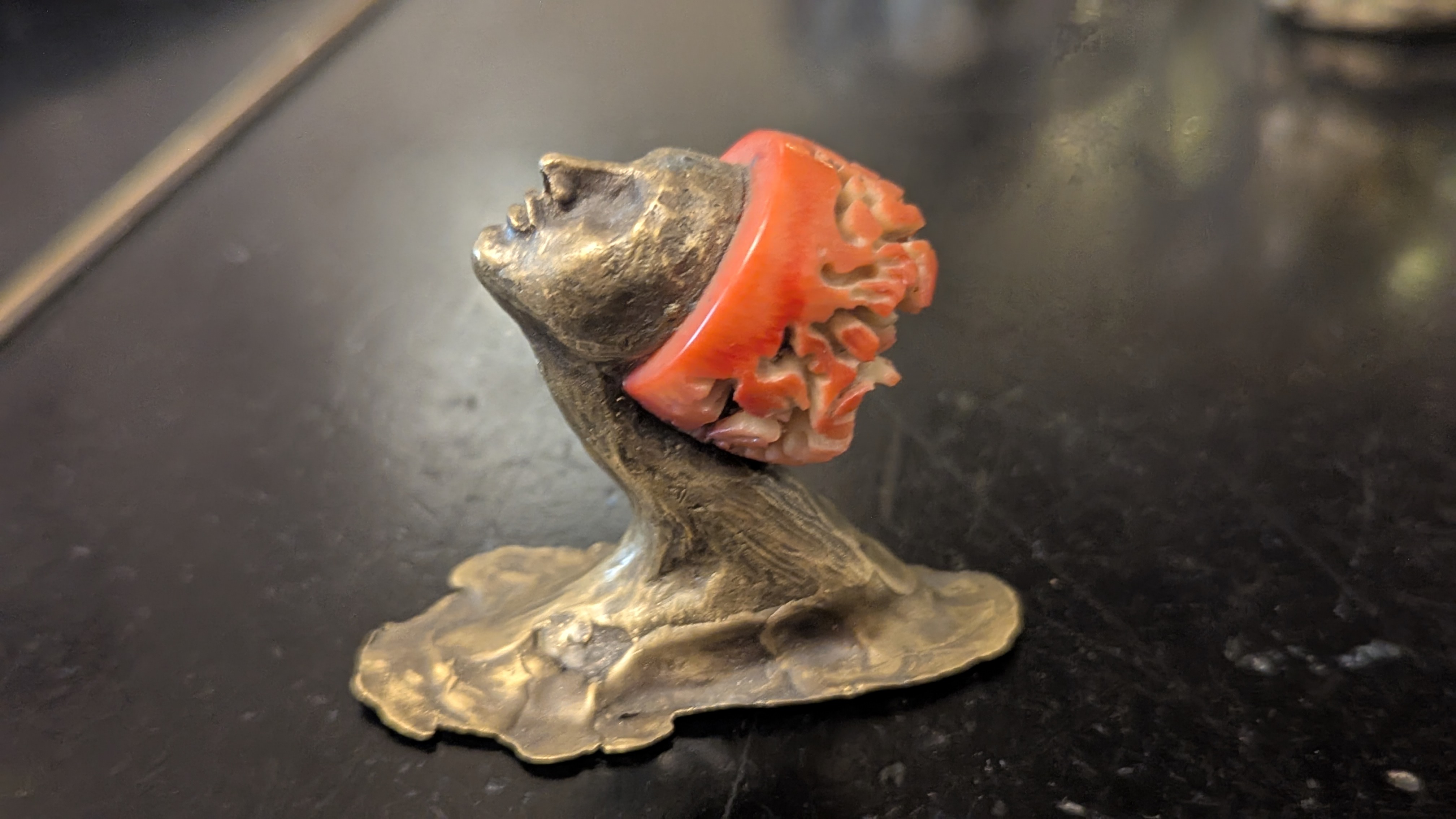 Однажды, сидя на приеме в кабинете у Саломеи, я восхитилась одной изящной полкой для цветов, выполненной в стиле модерн. На это как бы между прочим Саломея заметила: «Раз тебе нравятся такие вещи, ты наверняка оценишь и мои работы», — и достала из полки стола несколько миниатюрных статуэток. Все они были выполнены из камня или стекла и металла: бюст женщины в восточном тюрбане, принимающая ванну красавица, царевна-лебедь, спящие красавицы и многие другие. Эти работы показались мне находками какого-то старинного клада, а, может, даже сокровищами Древней Колхиды! Но нет, эти драгоценности – творения ее искусных рук! Вы когда-нибудь слышали, чтобы произведения искусства создавались с помощью обычной бормашинки?
