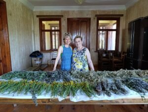 «Посмотрите, это зверобой, а это черноголовка. Правда, какие соцветия красивые?! «Эта трава помогает от сердца», —объяснила нам Мзия. – Здесь у нас тысячелистник, у него антибактериальное действие, его часто пьют вместе со зверобоем. А из цветов алтеи мы делаем настойки и сиропы от бронхитов. Тут у нас первоцвет. Он имеет успокоительное действие. А эта трава горечавка, она помогает от желудка и регулирует сахар в крови. А это – эндро, то есть марена, корень, которым мы красим на Пасху яйца, но также он помогает выводить камни из почек. Здесь мелисса, а это – крапива, она хорошо подходит для очистки крови и повышает гемоглобин».